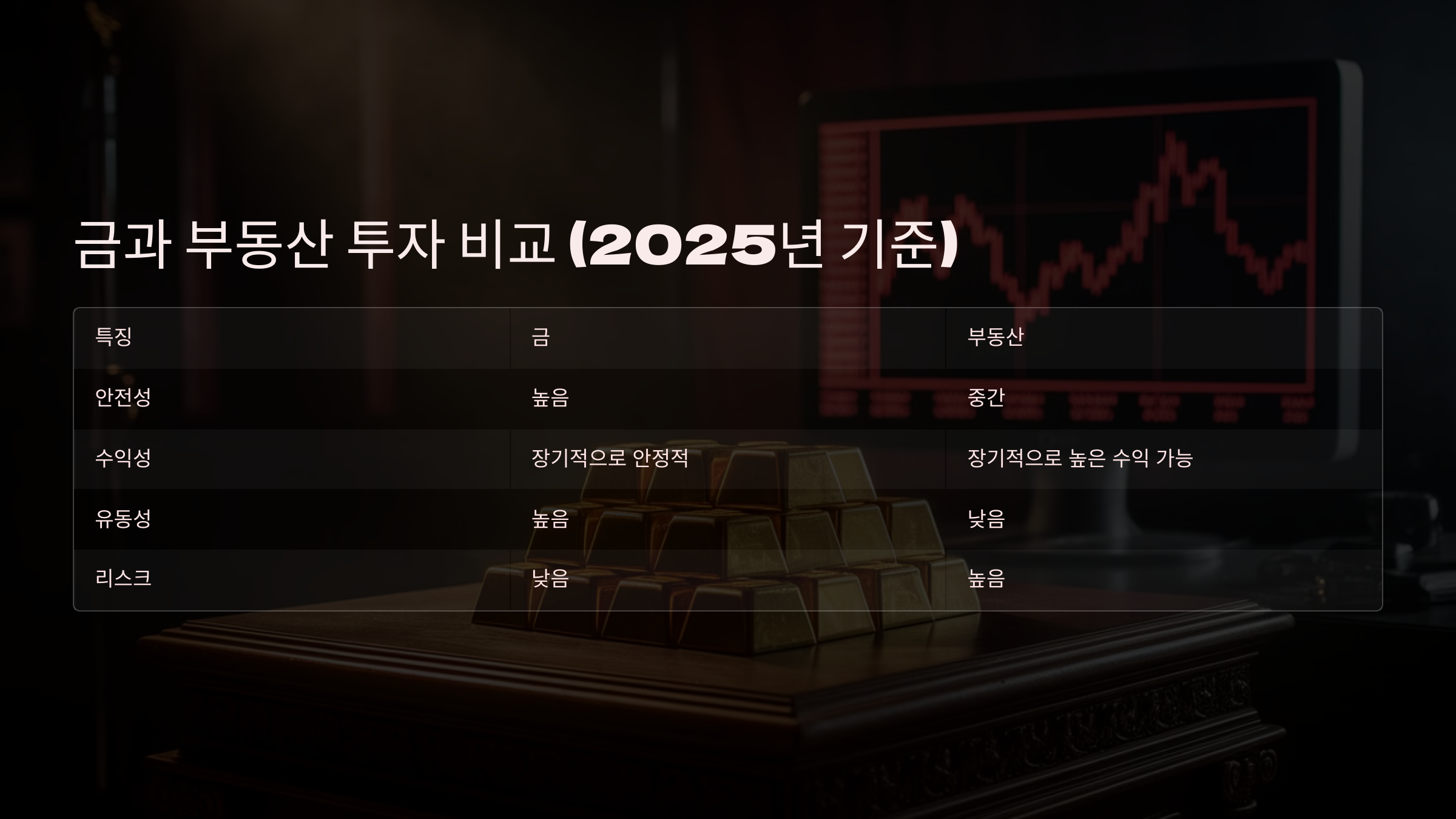 3. 금과 부동산 투자 비교 (2025년 기준)