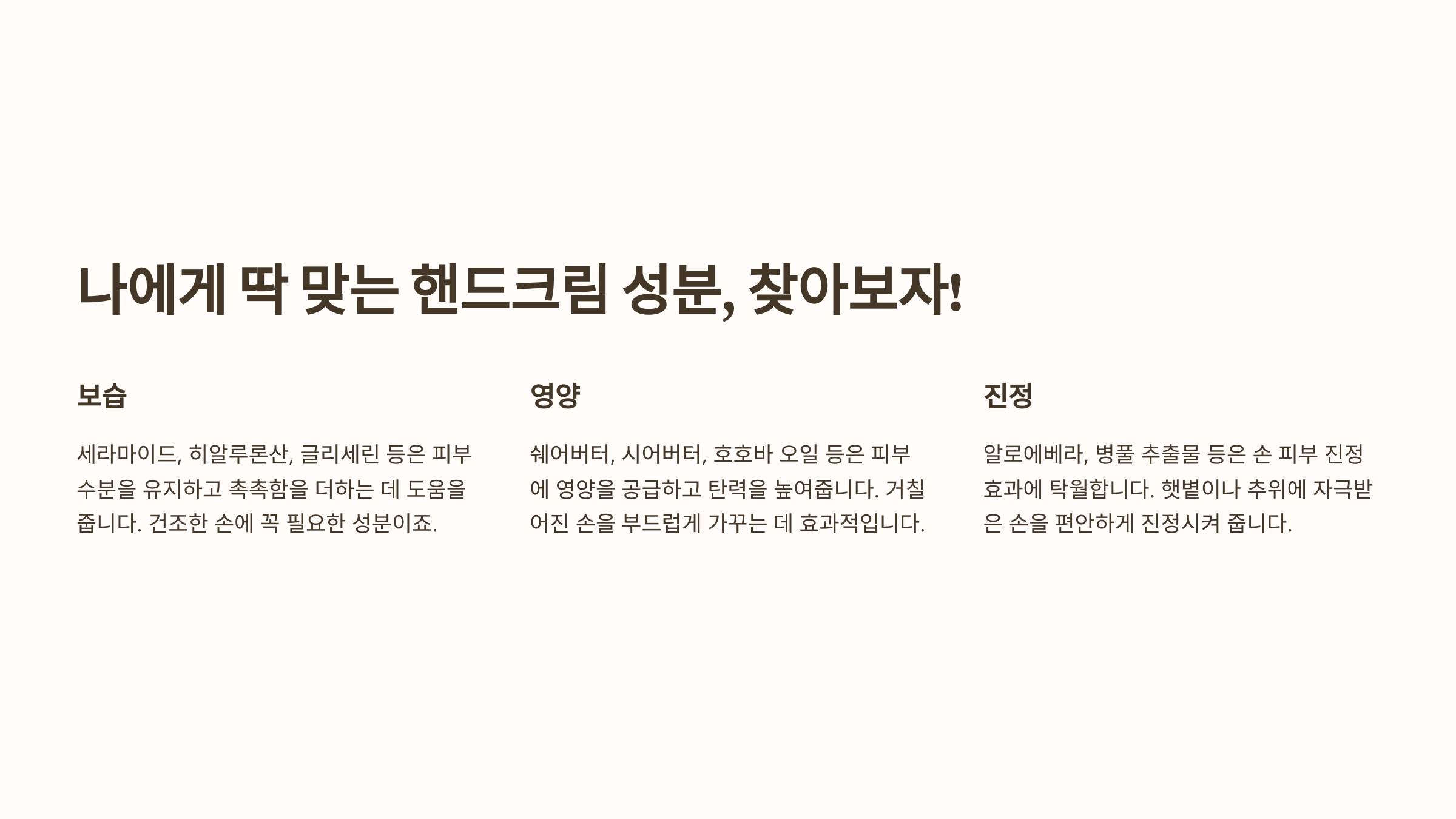 핸드크림을 고를 때 가장 중요한 것은 성분이에요. 보습 효과를 극대화하려면 다음과 같은 성분이 포함된 제품을 선택하는 것이 좋아요. 💡