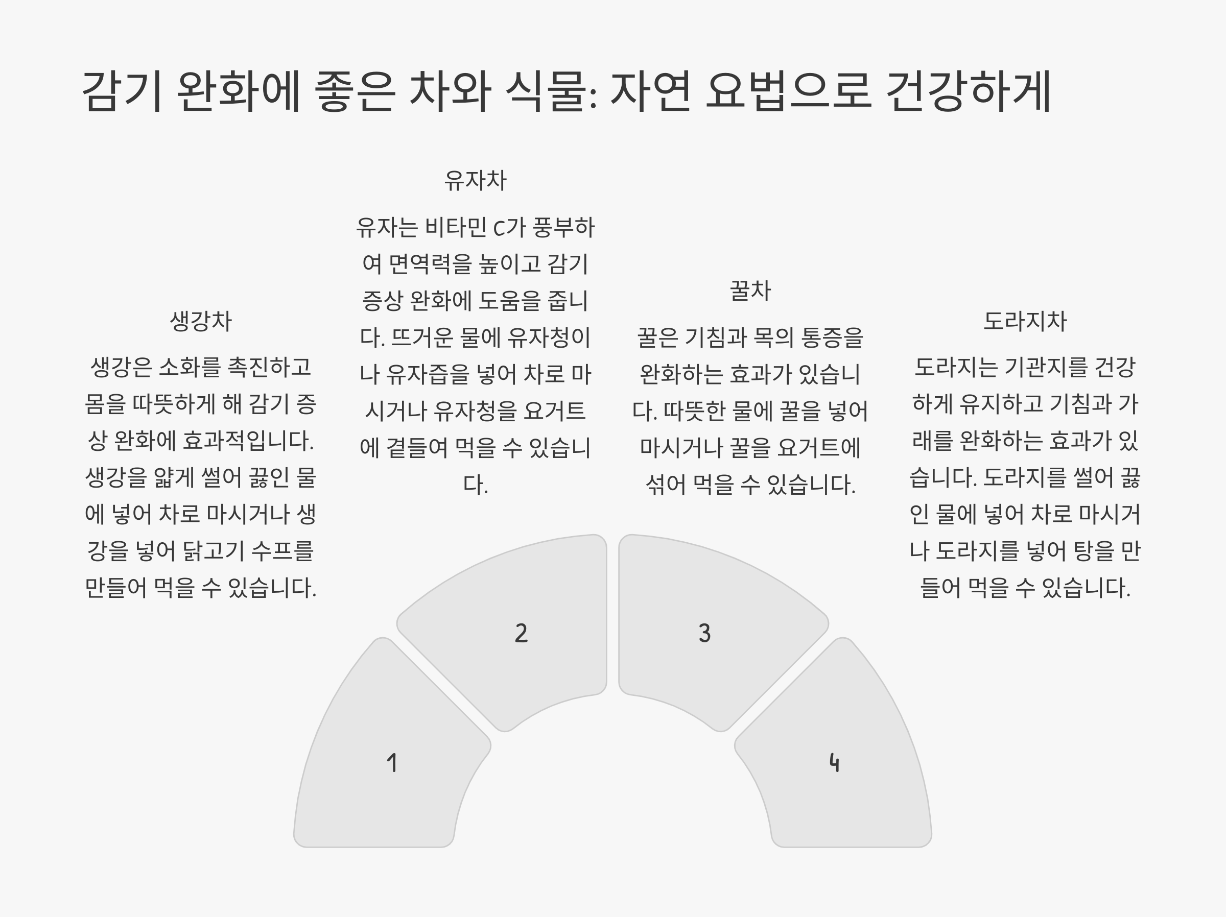 | 감초차 | 항염 작용, 면역력 증진 | 전반적인 감기 증상 완화 |