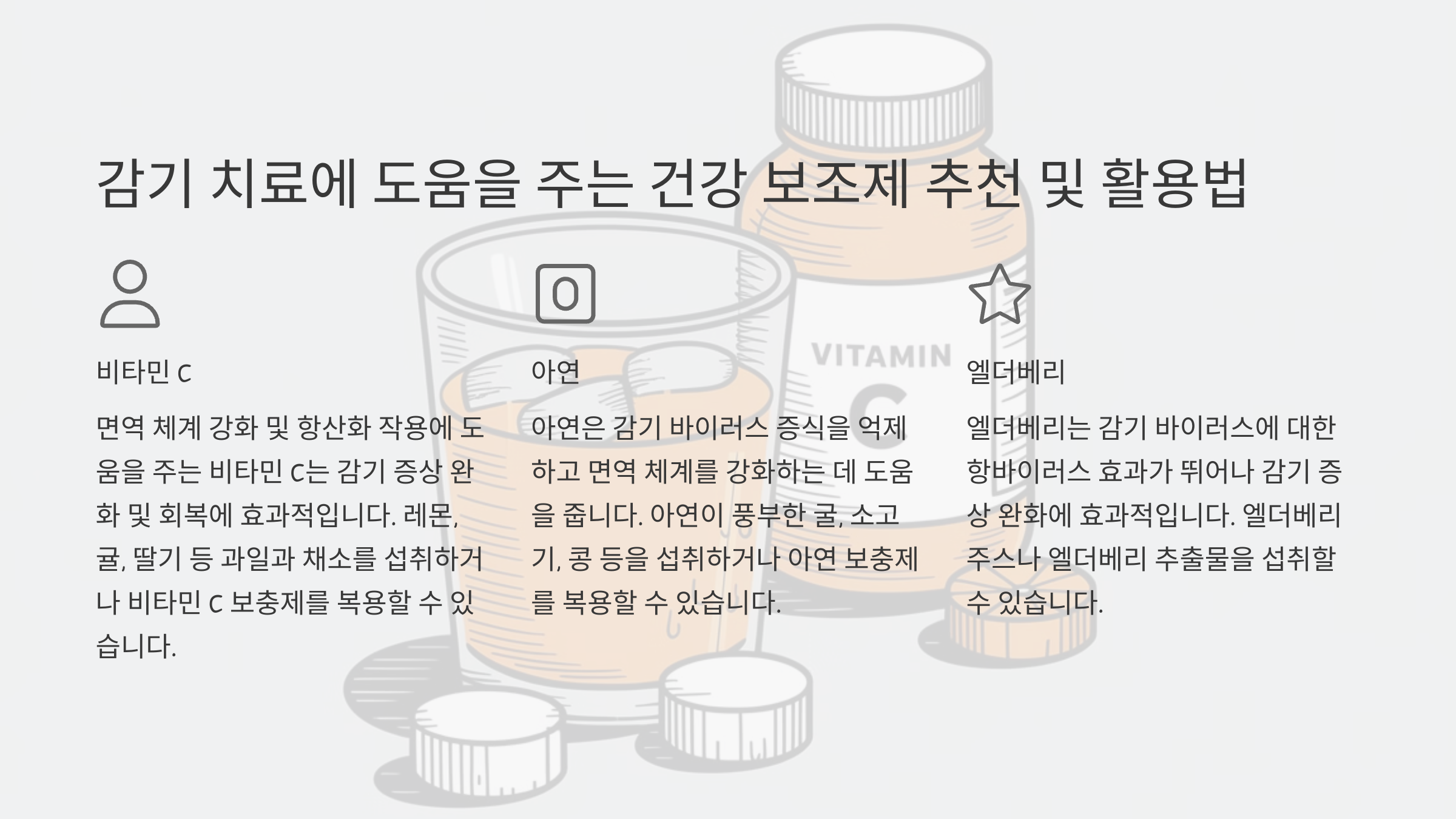 - 감기 치료에 도움 되는 건강 보조제 추천