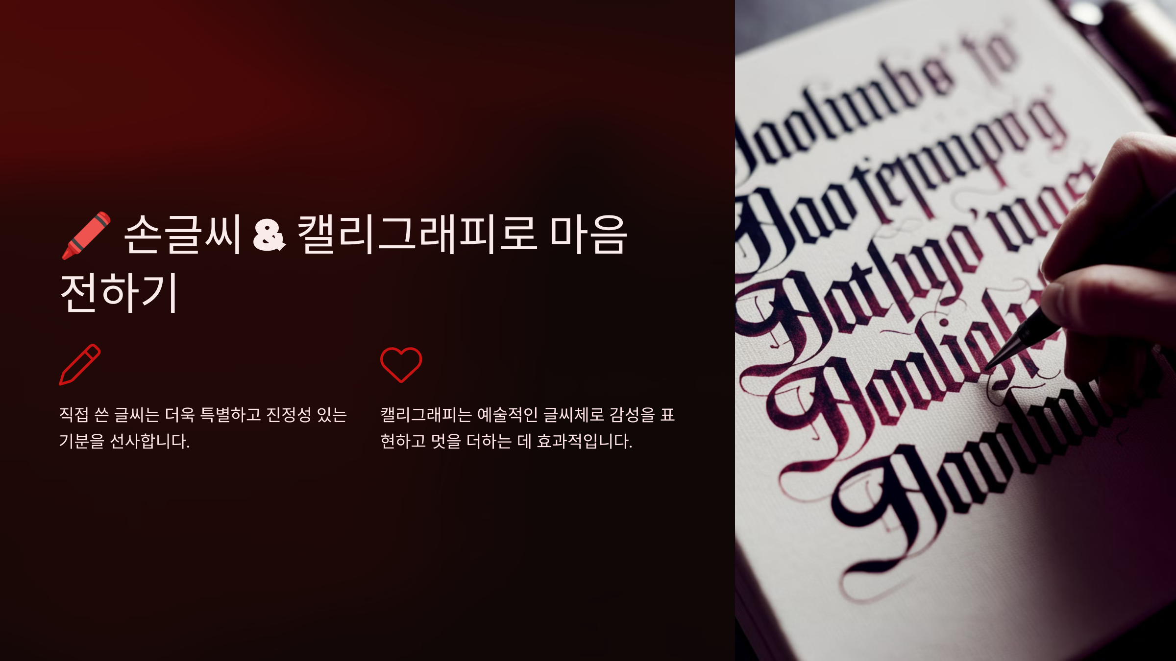 예쁜 손글씨나 캘리그래피 스타일을 연습하며 다이어리를 꾸밀 수도 있습니다. 다양한 필기구를 활용해 제목을 강조하거나 중요한 부분을 효과적으로 표현할 수 있어요. 펜의 종류에 따라 다양한 느낌을 줄 수 있으며, 여러 가지 글씨체를 연습하는 재미도 있습니다.