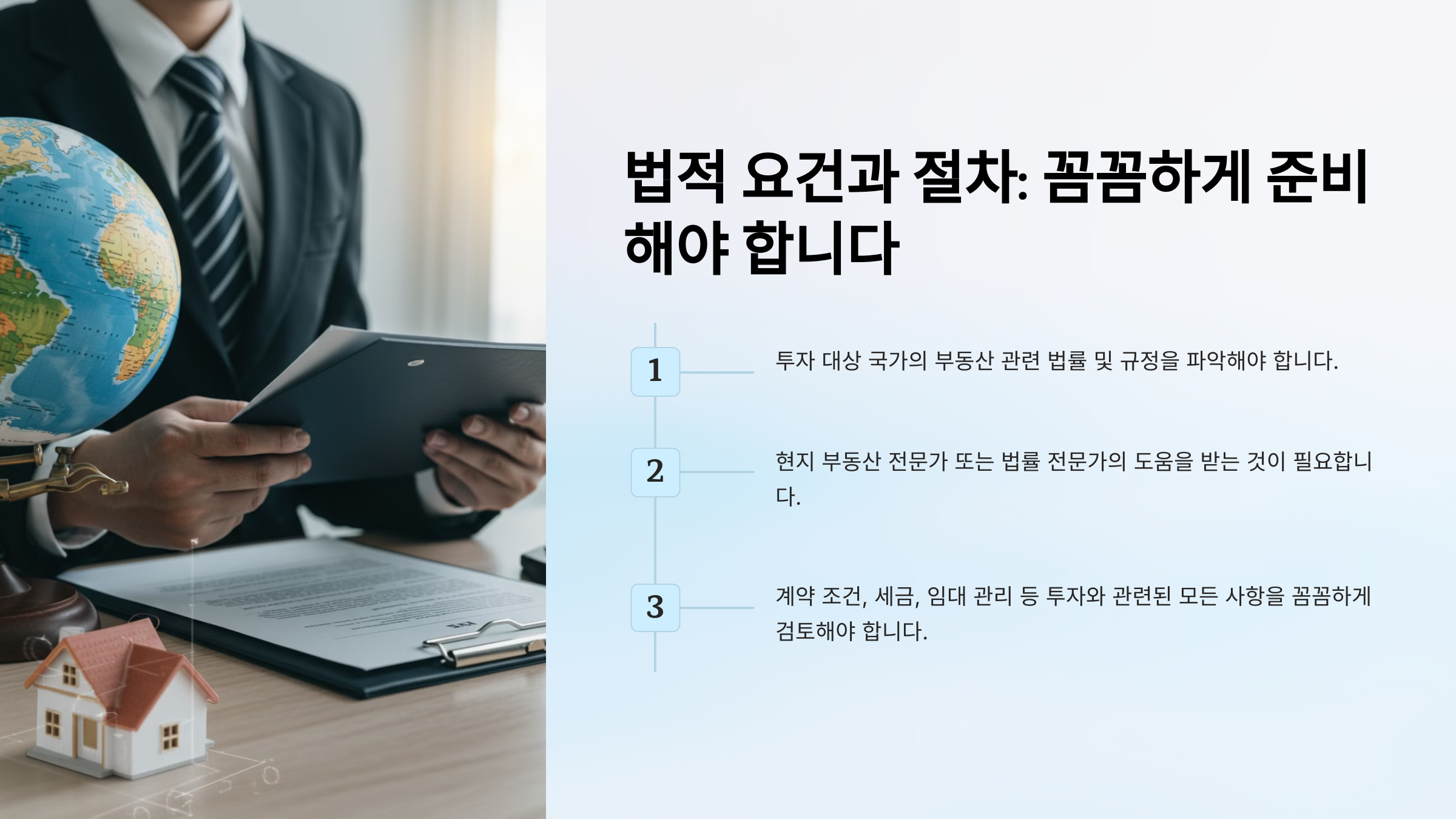 해외 부동산 투자를 시작하기 전에는 법적 요건과 절차를 철저히 이해해야 해요.