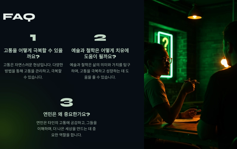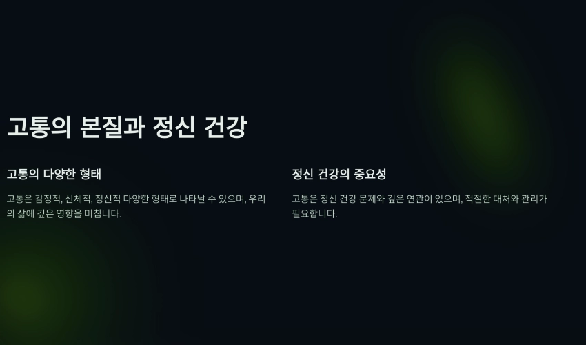 현대에서도 예술의 치유력은 널리 인정받고 있습니다. 음악 치료, 미술 치료 등은 정신 건강을 회복하는 데 효과적인 방법으로 사용됩니다. 또한, 명상이나 문학을 통한 내면의 성찰은 삶의 고통을 완화하는 데 큰 도움이 됩니다.