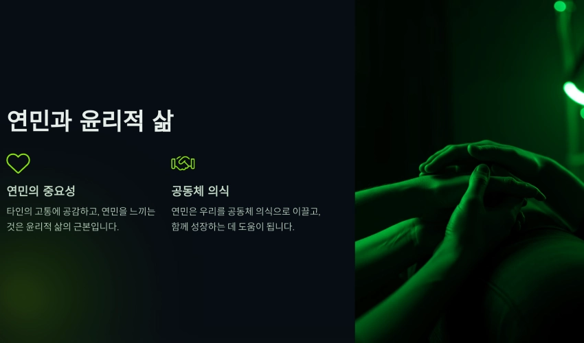 또한, 동물 실험을 반대하는 운동, 유기 동물 보호 활동, 채식 식단을 확대하려는 기업의 노력 등도 모두 연민의 윤리와 연결돼요. 현대 사회에서는 윤리적 소비 개념이 확산되면서, 단순히 개인의 만족을 넘어 타 생명체의 권리를 존중하는 소비 문화가 자리 잡고 있어요.