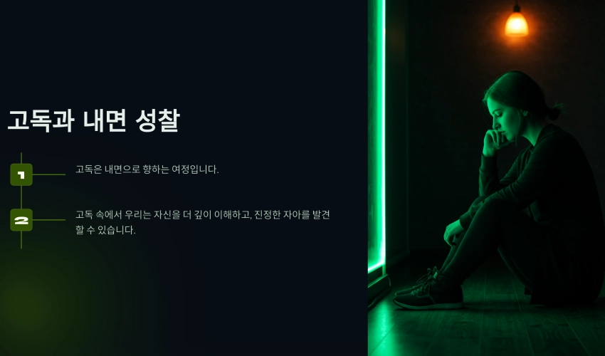 오늘날 우리는 끊임없는 정보와 소셜 미디어에 노출되면서 진정한 고독을 경험하기 어려운 시대를 살고 있어요. 스마트폰, SNS, 뉴스, 메시지 등이 우리의 주의를 끊임없이 빼앗아 가고 있어요. 이러한 환경에서는 내면의 목소리를 들을 시간이 부족하고, 타인의 평가에 의존하는 삶을 살기 쉬워요.