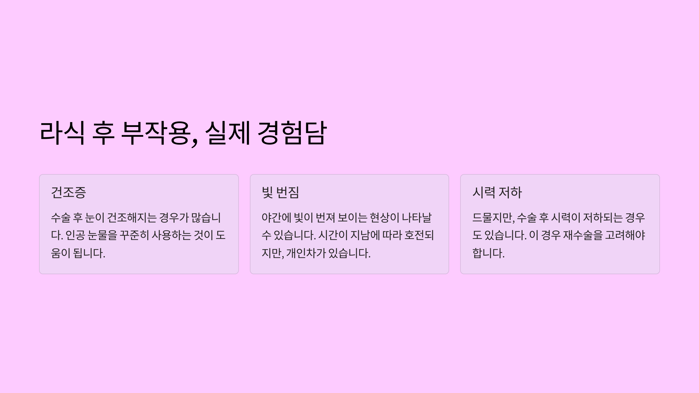 라식 후 부작용, 실제 경험담
