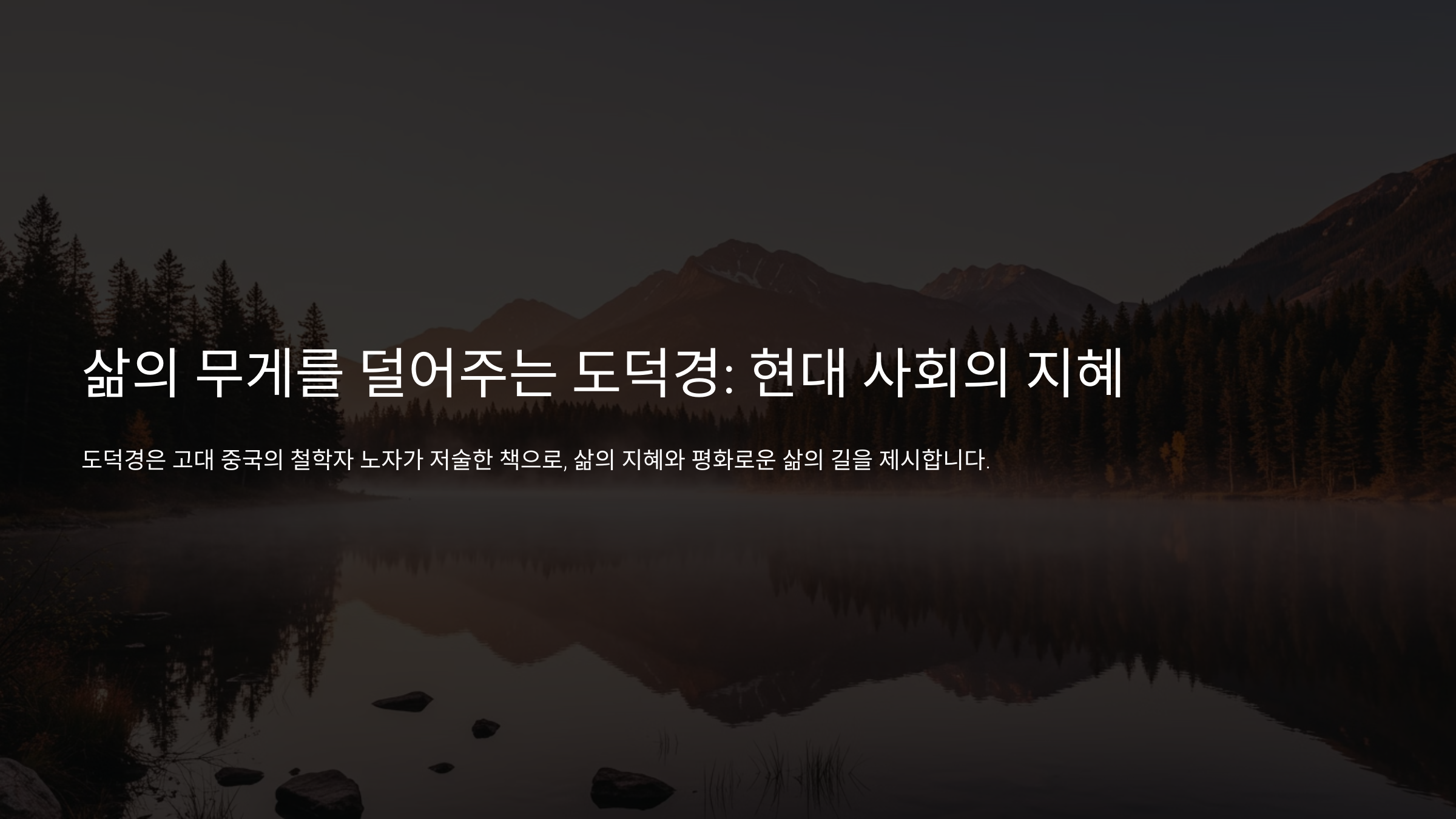 노자의 사상은 단순한 철학이 아니라, 실제로 우리의 삶을 더 평온하게 만들어 줄 수 있어. 현대사회에서는 특히 너무 많은 경쟁과 스트레스 속에서 살고 있기 때문에, 도덕경의 가르침이 더욱 가치 있어.