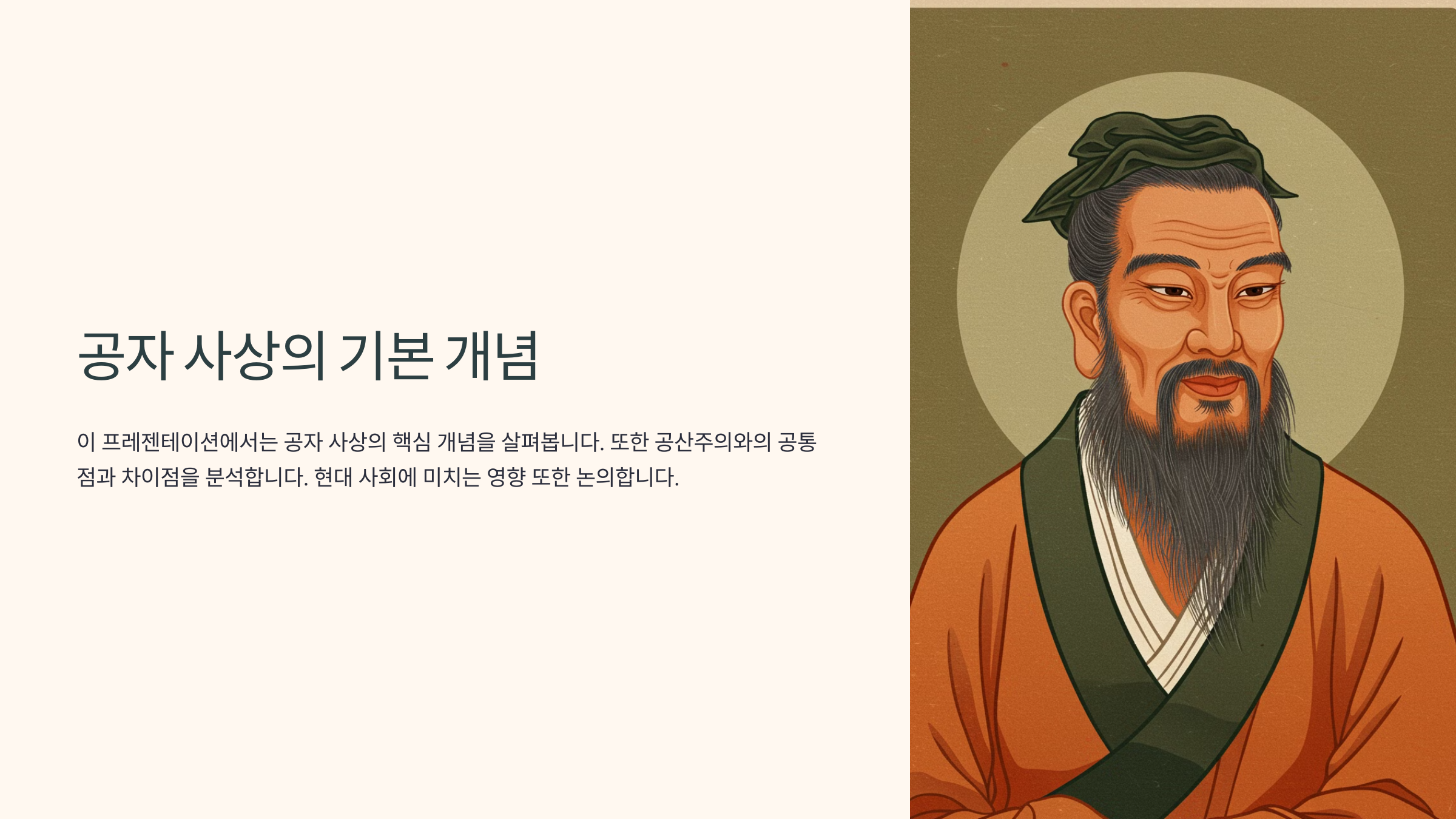이처럼 공자의 사상은 인간 개개인이 도덕적 존재가 되어야 하며, 이를 통해 조화롭고 안정된 사회를 만들어야 한다는 점에서 공동체 중심의 가치관과 공산주의적 요소를 일부 포함하고 있어요.